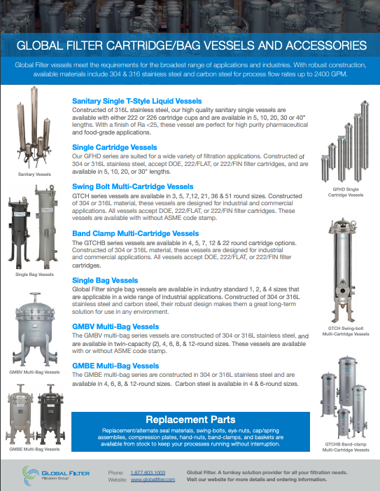 GTCHBシリーズマルチカートリッジハウジングは、産業用および商業用に設計されています。 容器は304または316Lステンレス鋼で構成され、10、20、30、40インチの長さのDOE、222 / FLAT、および222 / FINエンドカートリッジが利用できます。